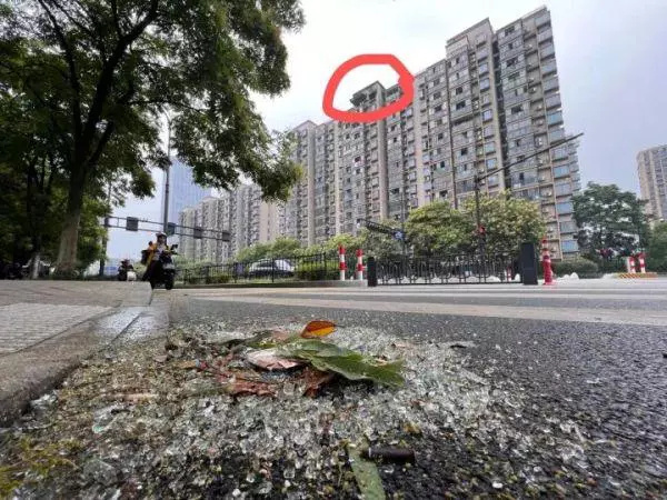 事发楼栋外就是临平区的北沙西路,在北沙西路上有环卫工人正在清扫马路,甚至在马路对面记者都还看到了成堆的玻璃碎片。