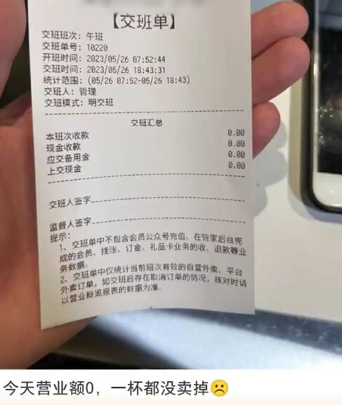 陈先生称,咖啡店于5月17日正式营业,开业当天和前几天营业额都是0元。“有一天卖了一杯咖啡,营业额是18元,最高的时候营业额是300元。”