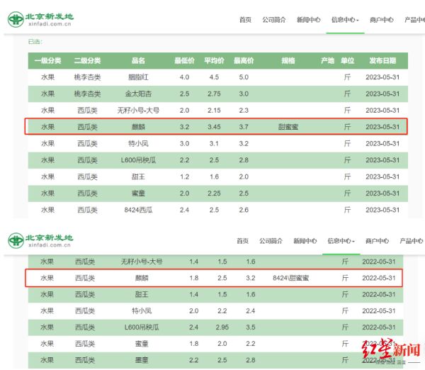 “今年麒麟瓜价格从产地就开始涨,比去年同期涨了5-6毛钱/斤。”6月1日,在广东、内蒙古等地有西瓜种植基地的张先生告诉红星资本局。
