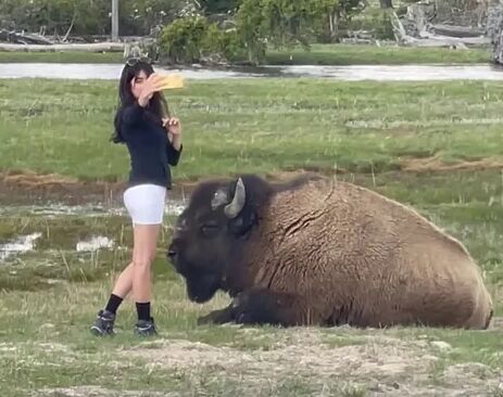 近期社交媒体发布的一段视频显示,一名美国女子在位于怀俄明州的黄石国家公园内,贴近野牛自拍。野牛躺在地上,而女子走到离野牛的脸很近的位置自拍。一位摄影师对此表示,他替野牛感到难过,“它如果无意中站起来,女子就会被刺伤。野牛很可能会被实施安乐死,即使这不是它的错。”