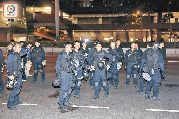 报道称,当晚10时45分,应变大队推进至弥敦道与窝打老道交界,遭遇1500名至2000名身穿黑衫黑裤,戴头盔、护目镜及防毒面具的暴徒。他们筑起防线,用激光光束及强光四面八方射向警方,更不断向警方防线投掷石头、砖块、伞、汽油弹等。