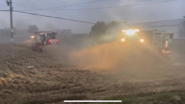 5月31日至6月1日,当地有的收割机几乎是24小时不停作业,司机一天吃饭和休息总共就四、五个小时,有的则是司机轮流休息、机器不停工。2日晚8点多,天空下起毛毛雨。让人欣慰的是,当晚,合作社所在村和周边基本已抢收完毕。大多数农户收完麦,都直接卖了,价格是1元多一斤,还有一些都收到了家里。江丹已带着合作社的收割机和播种机,赶到周边作业,帮麦熟晚几天的周边地方农机部门协调一些收割机资源。