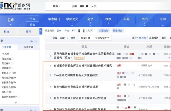 ▲苏某在读硕期间被知网收录的论文一览(画线部分)。