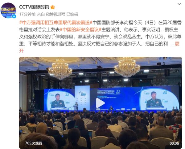 李尚福在香格里拉对话会上发表演讲,中方强调用相互尊重取代霸凌霸道