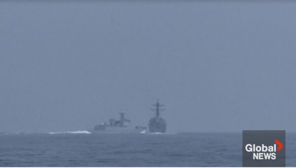 据加拿大《环球新闻》3日报道,在当天美国和加拿大军舰过航台湾海峡时,在现场对其跟监警戒的中国军舰险些撞到美军“钟云”号驱逐舰。