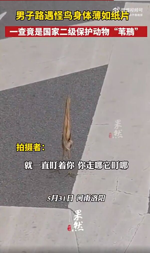近日,河南洛阳,一网友在路边偶然看到一只“纸片鸟”,小鸟浑身长满了棕色羽毛,远远看上去就像一张纸片,样子十分奇特。该网友称,这小鸟一直盯着自己,鸟的嘴巴很长,用手机一查发现是二级保护动物“黄斑苇鳽”,最后网友报警处理后离去。据洛阳市林业局介绍,一般鸟类、野生动物有救助站,到救助站后会有救助人员进行养护,恢复后放归自然。