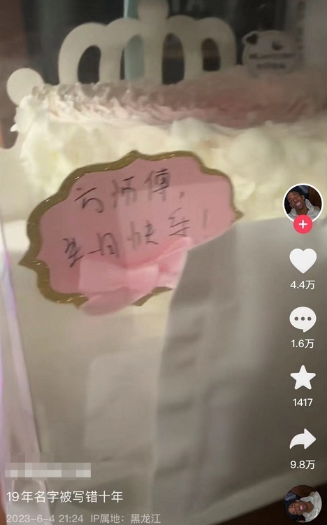6月5日,据山东电视台“闪电新闻”视频报道,6月4日,在黑龙江齐齐哈尔,一男子生日蛋糕名字被写错了10年。