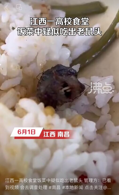 值得一提的是,据媒体报道,这已经不是该校第一次出现“老鼠事件”,早在2021年,南昌市监局就曝光过该校后厨进老鼠的问题。这就更加深了网友下意识地联想和不信任。这一次,南昌市监局也已经介入,我们期待真相大白,也期待最后权威的调查能够让人信服。