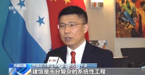 中国驻洪都拉斯使馆临时代办于波向中央广播电视总台记者介绍了这两个多月以来的建馆筹备工作。