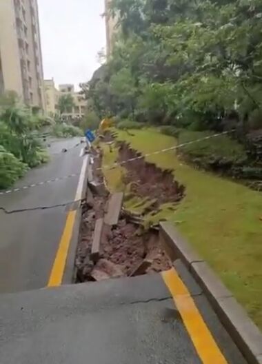 该工作人员表示:“相关部门正在开会研判事故的原因,还有之后的解决方案,路看着吓人,但是不影响建筑,是还在评估,但初步评估是不影响建筑。”