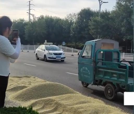 但从各地的考点设置来看,一般科三考点都是在车流不算太多,且道路设施较新的道路上去,大妈可能就是因为这里车不多专门将麦子拉到这里来晒的。