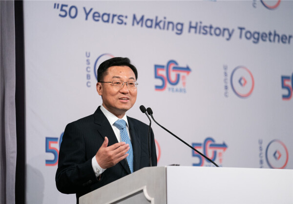 2023年6月7日,中国驻美国大使谢锋应邀出席美中贸易全国委员会为其履新举行的欢迎活动并发表主旨演讲。