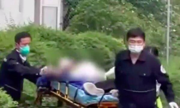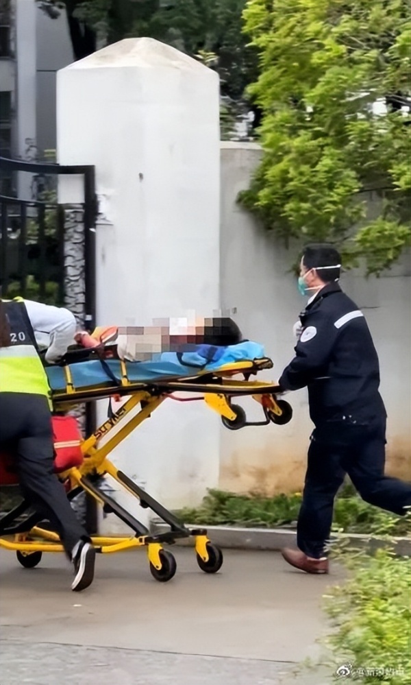 从该网友发布的视频里,一栋建筑物前坪有大块血迹,现场有警方工作人员。一名年轻男子躺在救护担架车上,有医护人员在处置伤口。