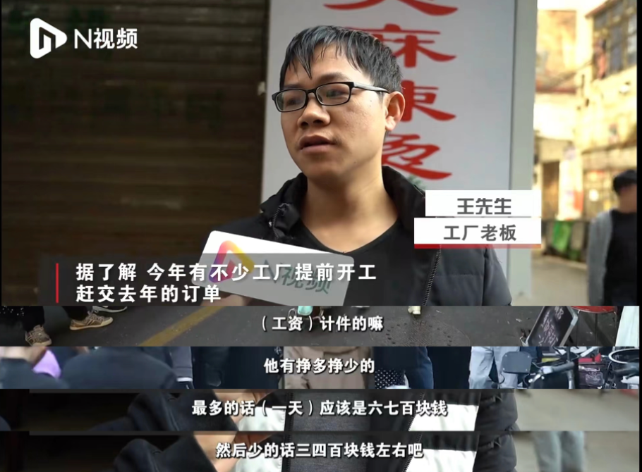 据了解,今年有不少工厂提前开工,赶交去年的订单。工厂都按计件方式给工人结算工资,工时长、完成件数多,才有可能获得高工资。