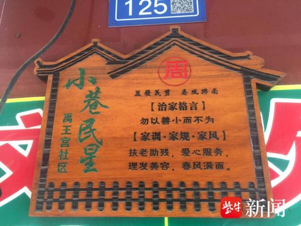 来到近前,二层小楼,楼下开店,楼上住人。店门前,除了店招和喜庆的红灯笼,社区颁发的“小巷民星”木牌惹人注目,牌子上刻着店主的治家格言“勿以善小而不为”。