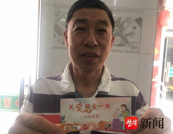一个称刘菊老公“老表”的中年男子说话很风趣,事后记者得知,其实他们并非亲戚。记者注意到,有的顾客剪好后,付现金或扫码,也有不少老人递给刘菊一张抵用券。原来,发廊和所在的禹王宫社区合作,向社区空巢老人、耄耋老人发放免费服务卡。