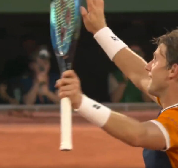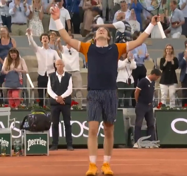 法网2023男单半决赛,4号种子鲁德直落三盘以6-3、6-4、6-0横扫兹维列夫,连续两年打进法网男单决赛,将与德约科维奇争夺最终冠军!
