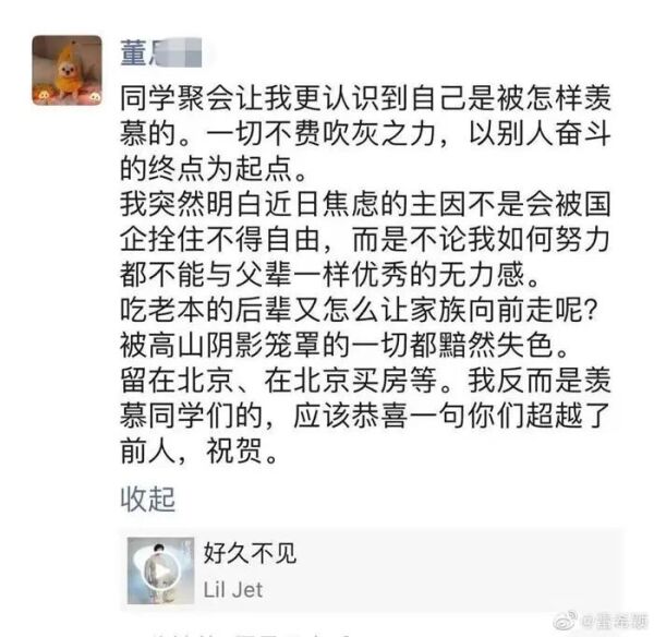 网友截屏疑似董某某个人社交账号。