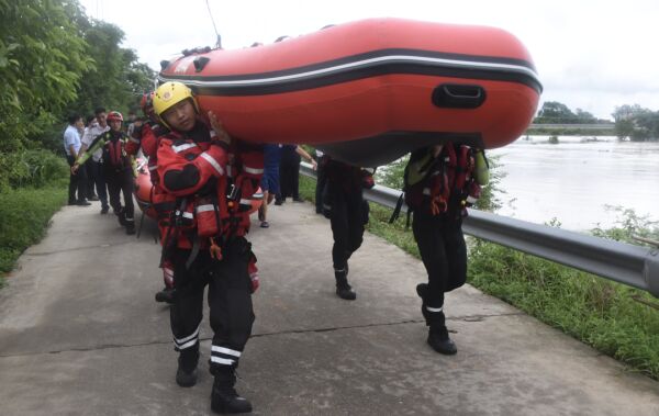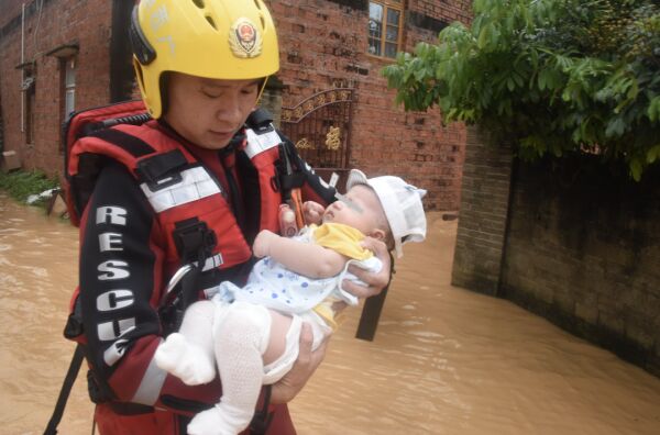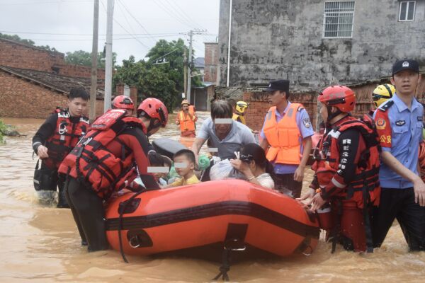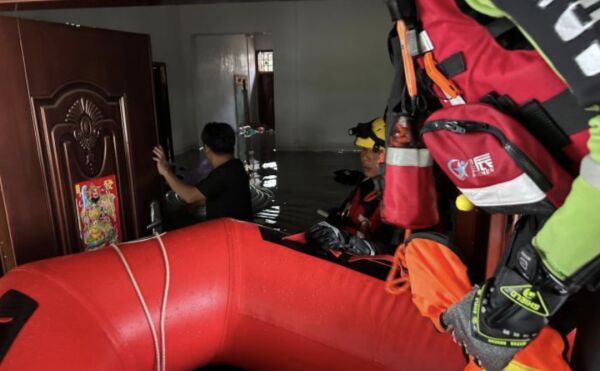 目前,消防救援人员仍奋战在抗洪抢险救援一线。