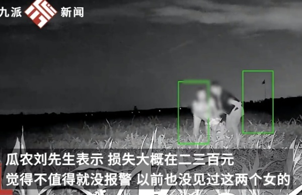 瓜农刘先生表示,损失大概在二三百元,觉得不值得就没报警,以前也没见过这两个女的。刘先生称,由于监控没拍清楚脸,难以找到这两人,希望各位瓜农提高警惕。