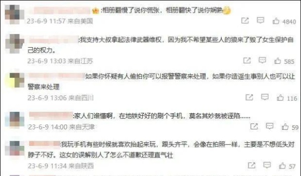 不少网友认为,女子警惕被偷拍初心没错,但是在没有证据的情况下还发文曝光有些行为过激。也有网友认为,现在偷拍事件频发,女子可能也是因为希望保护自己的权利才做出此举,虽然有些过了,但不至于深责。