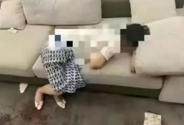 该网传朋友圈截图包括一段文字和一张图片。图片中,一名女子疑似醉酒趴在沙发上。
