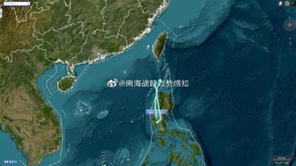 6月14日,根据美海军“里根”号航母舰载机“灰狗”C-2A(AE0455、AE045E)飞行轨迹判断,“里根”号航母正在穿越巴士海峡,进入南海活动。
