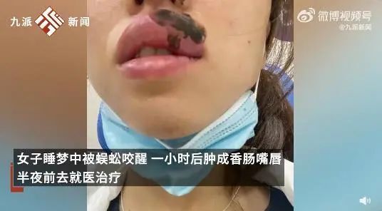 6月12日,江苏常州一女子睡梦中被蜈蚣咬醒,一小时后肿成“香肠嘴唇”,半夜前去就医治疗。