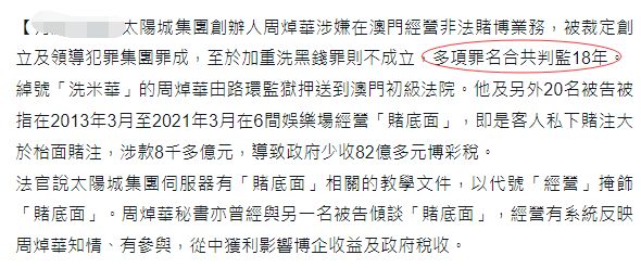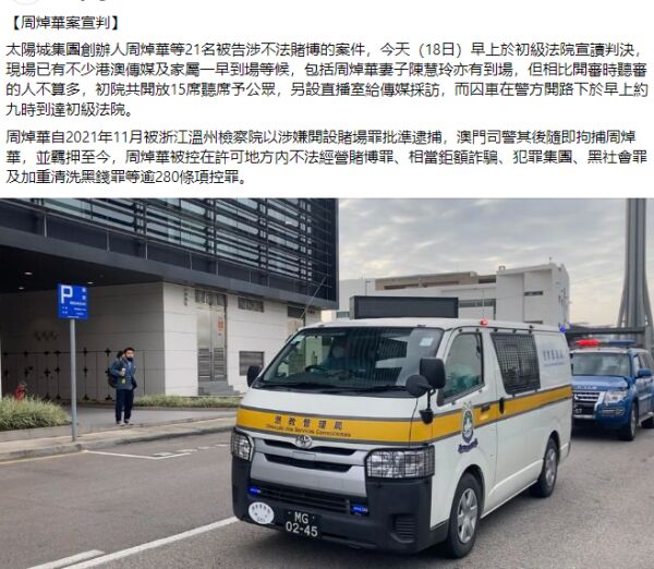 据媒体报道,澳门娱乐大亨周焯华(洗米华)一案在1月18日上午宣判。