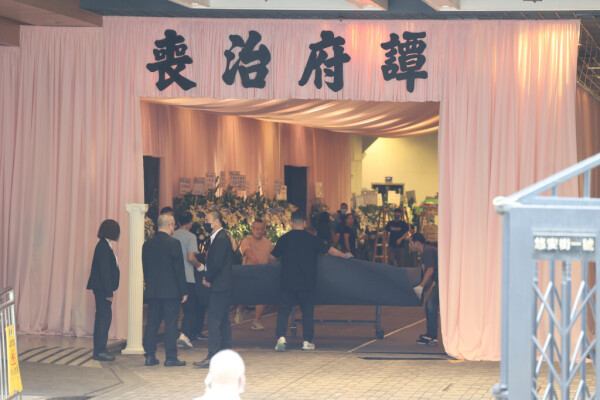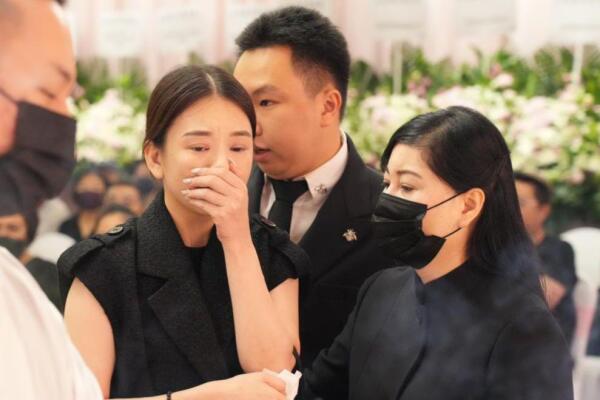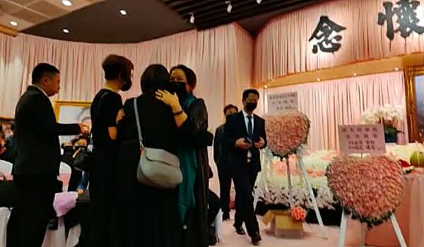 谭家坐在灵堂第一排,蔡天凤的婆婆(即Chris妈妈)表现最伤感,多次与来宾相拥痛哭,Chris父亲谭泽均也多次抹泪。
