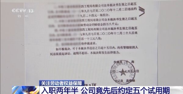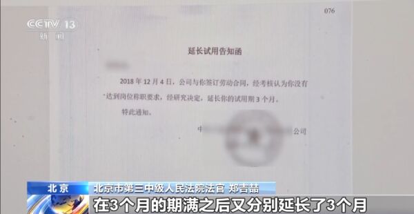 北京市第三中级人民法院法官郑吉喆:后来,这个工程公司就如此往复,先后一共5次跟陈先生都签订了3年期的劳动合同,其中5份合同里有4次约定了3个月的试用期,在3个月的期满之后又分别延长了3个月,还有一份合同直接约定了6个月的试用期。