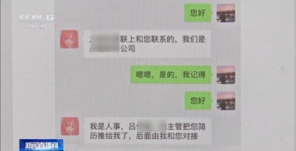 求职者李先生:一开始说是电话联系我,联系不上,让我加这个微信,跟我谈薪资,说我已经通过面试了。微信号是他们的人事吕某给我的,我就认定这个人是他们人力资源的。