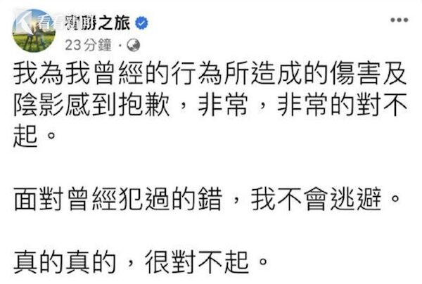 6月19日,据媒体报道,台湾艺人宥胜被指控性骚扰。两位曾与他共事过的女性工作人员分别发文,指控他曾至少对三位女性做出过性骚扰行为。随后,宥胜发声致歉,表示对曾经的行为所造成的伤害及阴影感到抱歉,并传讯向受害者道歉。