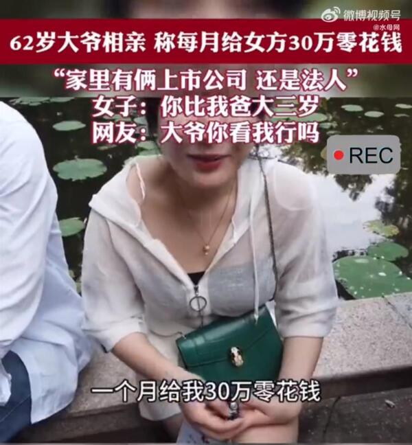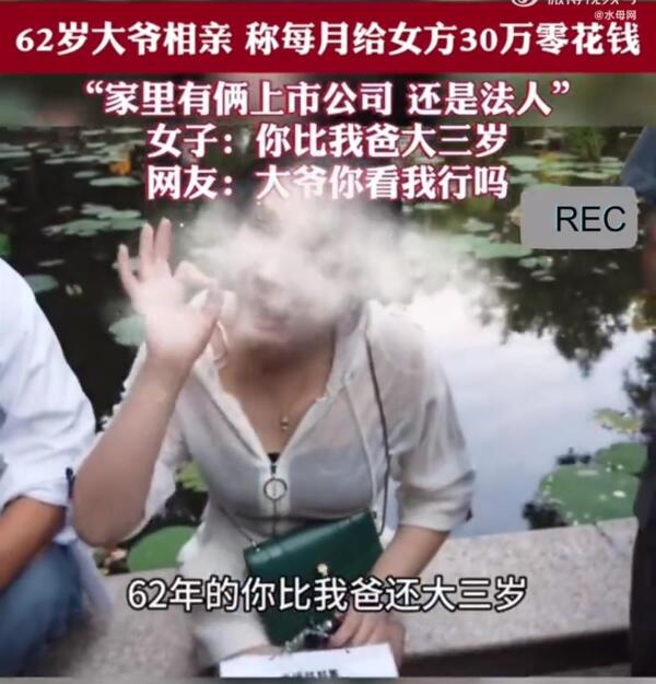 据水母网报道,6月19日,上海,62岁大爷相亲,称每个月可以给女方30万元零花钱,引发网友热议。