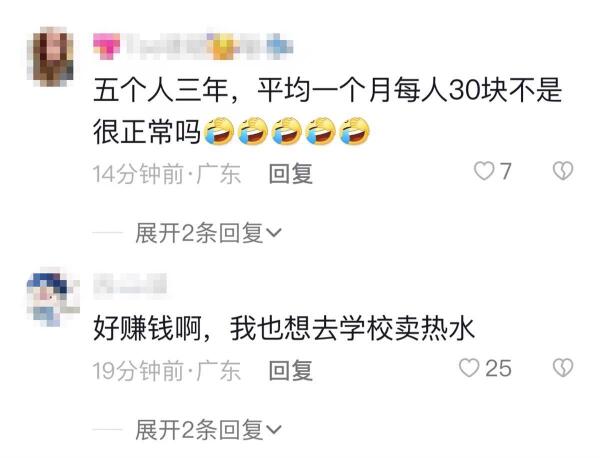 对此,有的网友粗略计算发现,平均每人每月的热水费大约是30元,认为很正常。也有网友认为价格高。