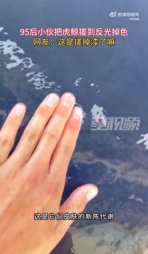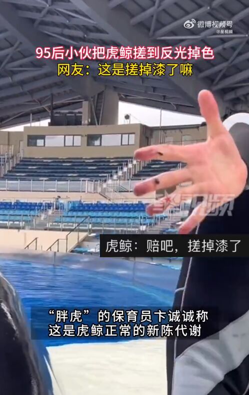小伙给虎鲸搓澡搓到反光掉色