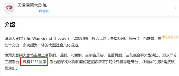 在天津津湾大剧院官方账号已经公布大剧场观众厅分三层看台,设有1251个座席的情况下,依然有网友在说,津湾大剧院只能容纳四百人。