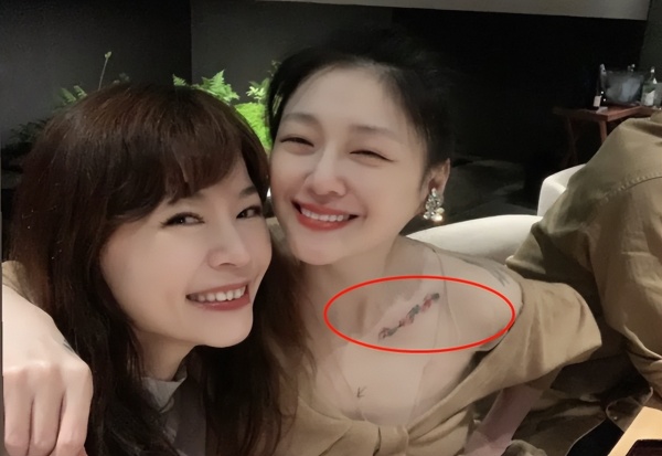这天,大S不但没有用粉底遮盖胸口的两处新刺青,还特意穿了低胸小礼服,高调秀恩爱,正式将“纹身”介绍给大家认识。