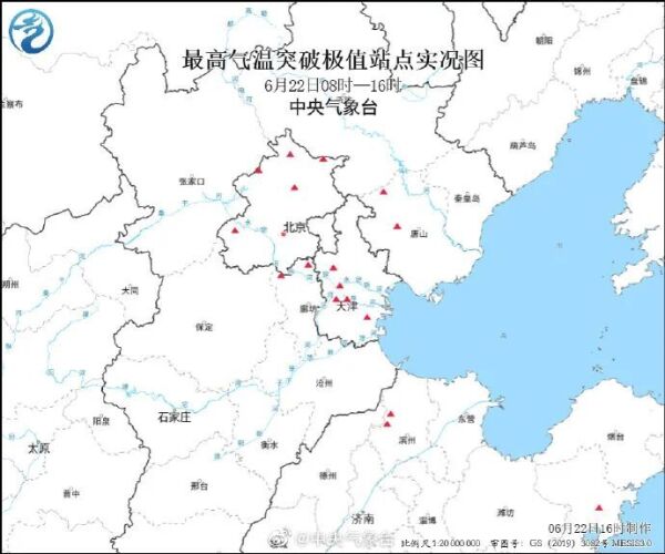 另外,在京津冀范围内,天津西青40.6℃,天津市区41.2℃,均打破当地观测史最高气温纪录(原纪录西青40.5℃,市区41℃)。
