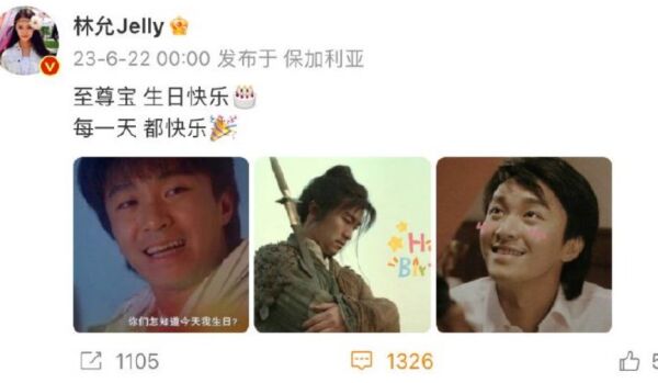 导读:6月22日,林允发文祝周星驰61岁生日快乐,配文:至尊宝,生日快乐!据悉这是林允第8个年头卡点祝恩师生日快乐。