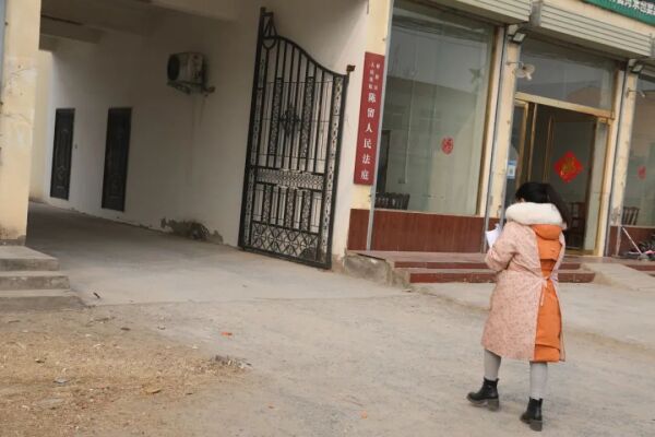 2月7日上午急匆匆赶往陈留法庭进行调解的男方母亲