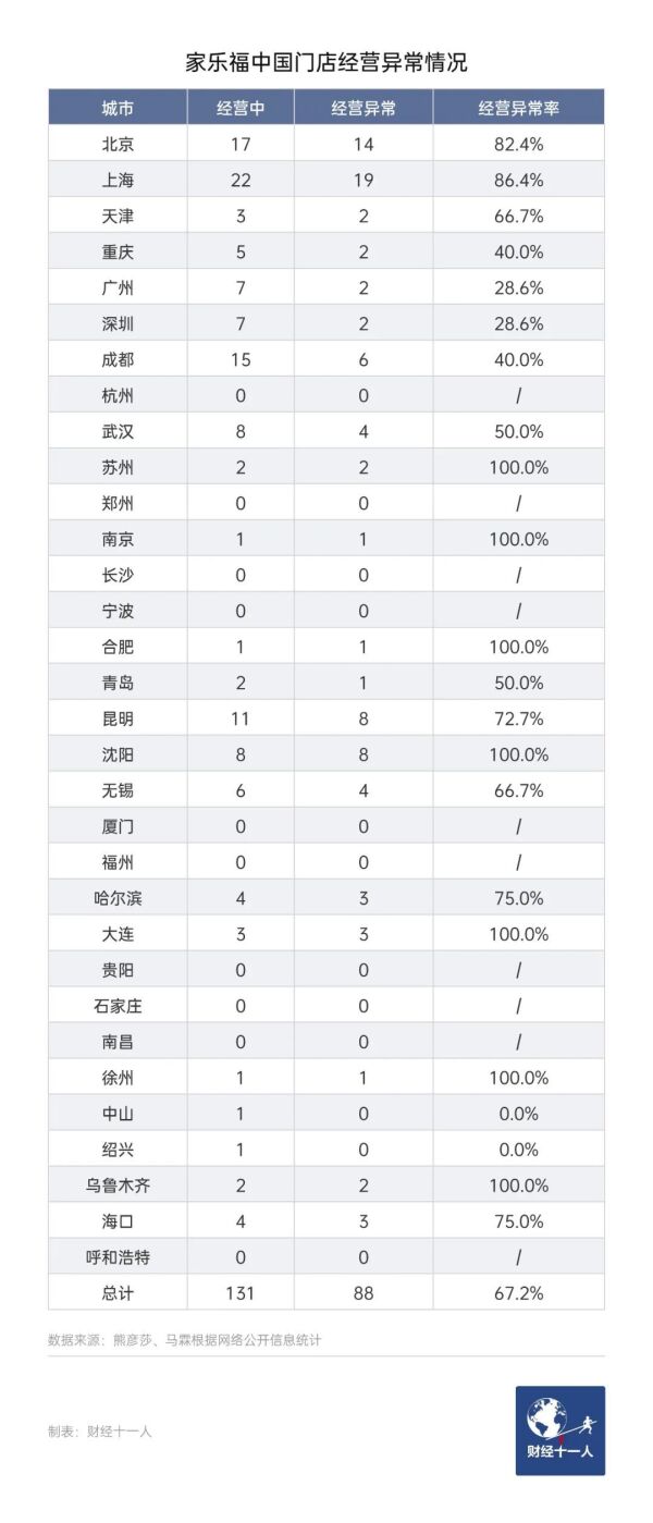 家乐福中国门店持续减少,北京上海经营异常率超80%