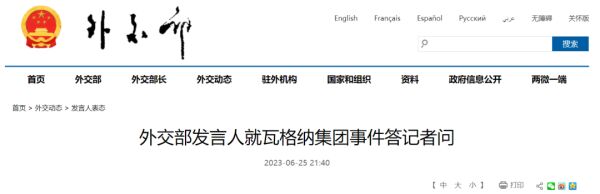 25日晚,外交部发言人就瓦格纳集团事件答记者问。