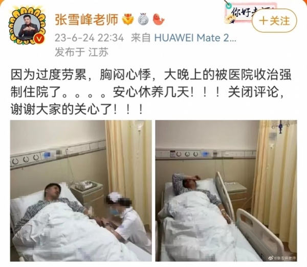 导读:近日,张雪峰发微博称因过度劳累,胸闷心悸,被医院收治强制治疗,引发关注。6月26日,其经纪人回应称:身体状况没有大碍,感谢大家关心。