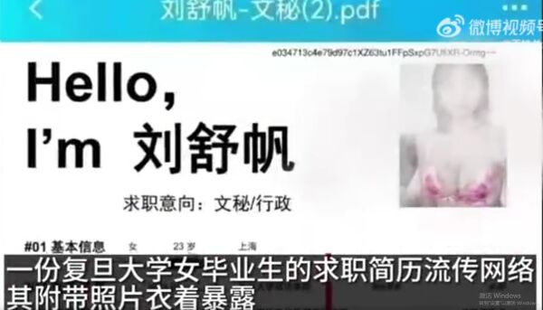 据百姓关注报道,6月26日,一份复旦大学女毕业生的求职简历流传网络,其附带照片衣着暴露。