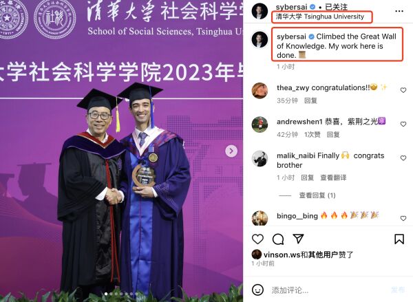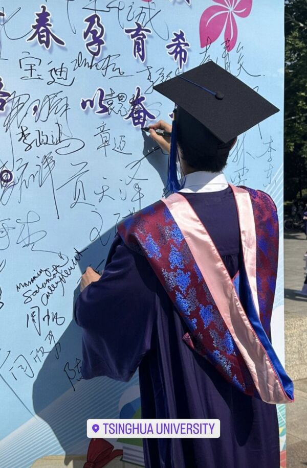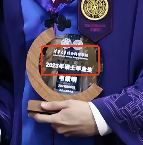 从韦紫明手里拿着的毕业纪念牌不难看出,他在清华大学读的是社会科学专业,学历为研究生。