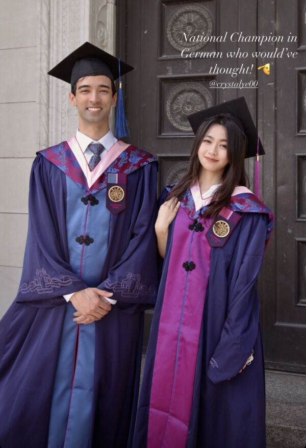 值得一提的是,他还带着自己的女朋友一起参加毕业典礼,两人十指紧扣在一起。女生颜值和气质都相当在线,这妆容偏向欧美风,估计也和韦紫明一样拥有国际视野吧。