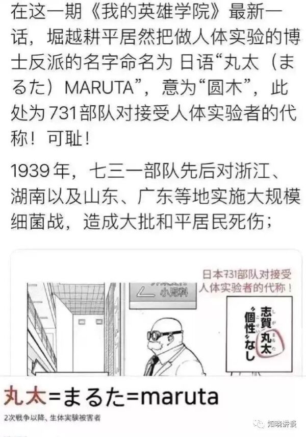 其次,这部被推荐的动漫作品明显涉及辱华内容,这部日漫《我的英雄学院》,虽然打着“英雄”二字,实则却是在日本当年的侵华暴行洗地,里面使用针对中国人的侮辱性称呼,还将这个名称给予故事中的反派人物。