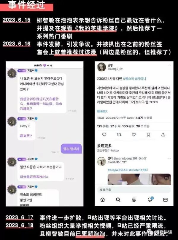 导读:近日,韩国女团aespa成员柳智敏发文推荐大家看一部动漫,但该动漫存在辱华和历史争议,引发讨论。柳智敏表示推荐涉嫌辱华内容的动漫实属无心之失。
