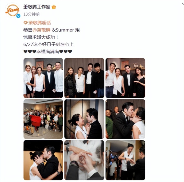 晚些时候,萧敬腾工作室也晒出了多张boss求婚的现场图,甜翻众人!
